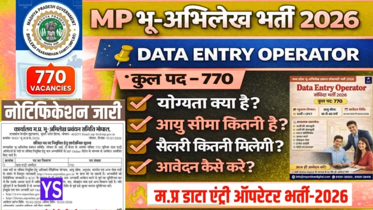 मध्य प्रदेश भू-अभिलेख प्रबंधन सोसायटी (MPLRS) ने डाटा एंट्री ऑपरेटर (DEO) के 770 रिक्त पदों को भरने के लिए एक बड़ी …