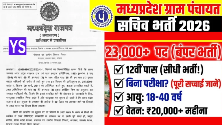 भोपाल: मध्य प्रदेश के युवाओं के लिए एक बड़ी खुशखबरी सामने आ रही है। प्रदेश में ग्राम पंचायत सचिव के करीब …