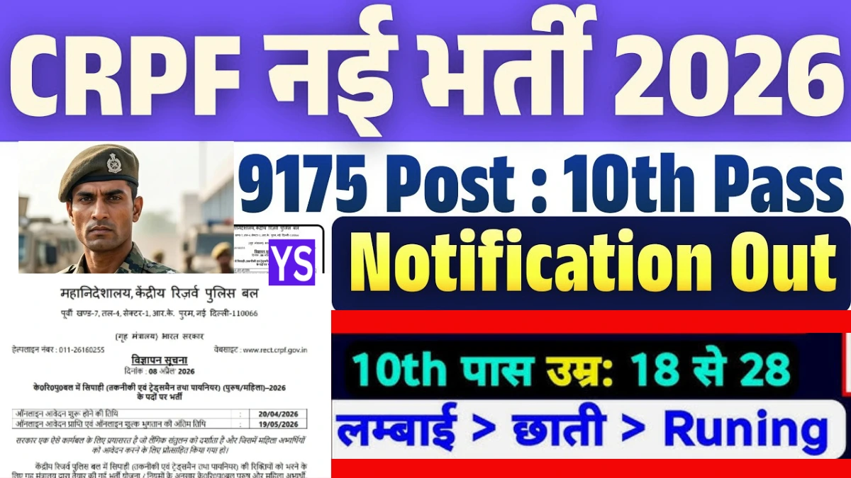 केंद्रीय रिजर्व पुलिस बल (CRPF) देश का सबसे बड़ा केंद्रीय सशस्त्र पुलिस बल है। हर साल हजारों युवा CRPF में कांस्टेबल (सिपाही) बनने का सपना देखते हैं। CRPF कांस्टेबल भर्ती 2026 उन सभी उम्मीदवारों के लिए एक स्वर्णिम अवसर होगी जो देश सेवा में अपना करियर बनाना चाहते हैं। इस लेख में हम आपको इस भर्ती से जुड़ी हर छोटी-बड़ी जानकारी देंगे, जैसे पात्रता, आयु सीमा, चयन प्रक्रिया, शारीरिक मानदंड, आवेदन शुल्क और महत्वपूर्ण तिथियाँ।